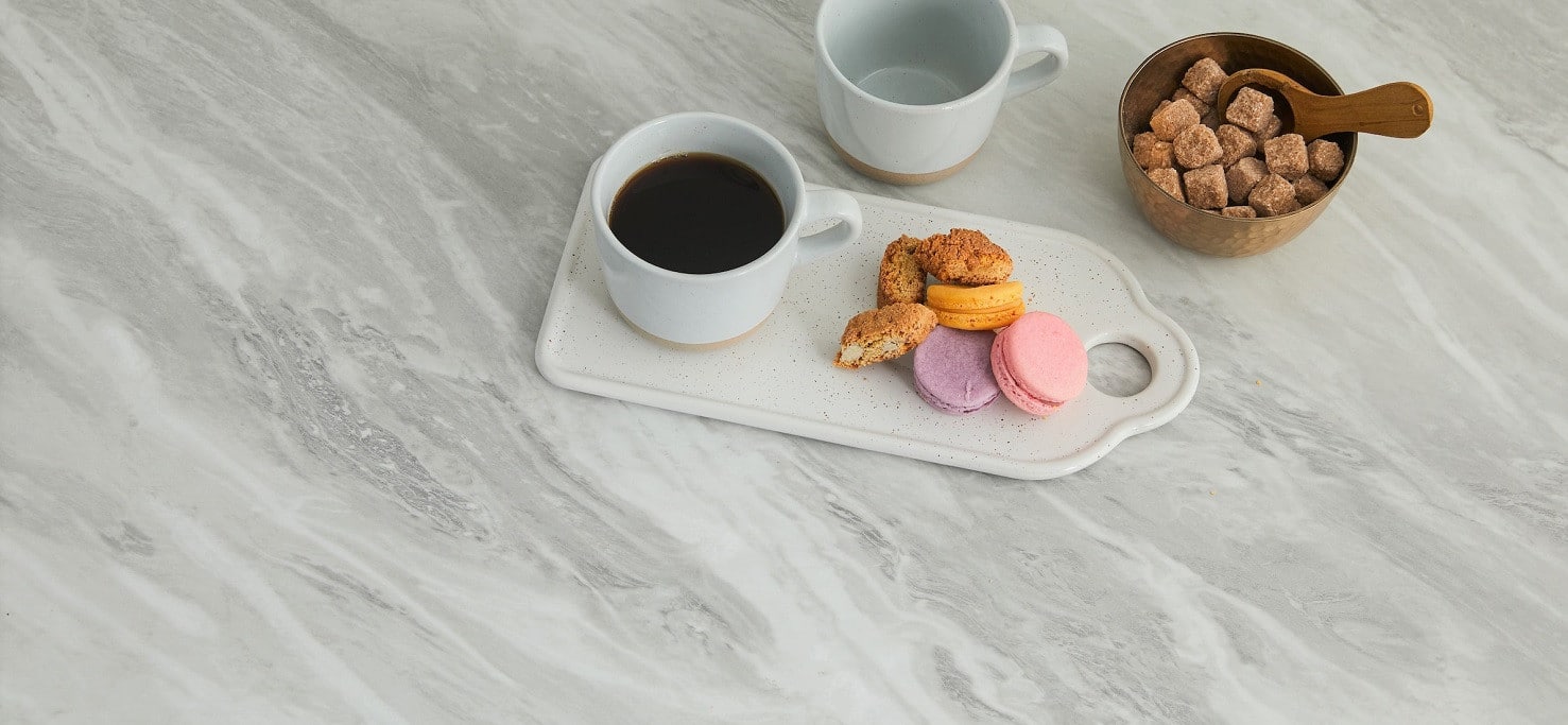 To clean the surface, use a damp cloth or sponge and a mild soap or detergent. Rinse thoroughly with warm water and wipe dry. Difficult stains such as coffee or tea can be removed using a mild household cleaner and baking soda; mixing to achieve a paste consistency. Use a stiff nylon bristle brush, scrubbing (approx. 15-20 strokes) the affected area. Do not scrub so as to mar (damage, scratch) the surface finish.