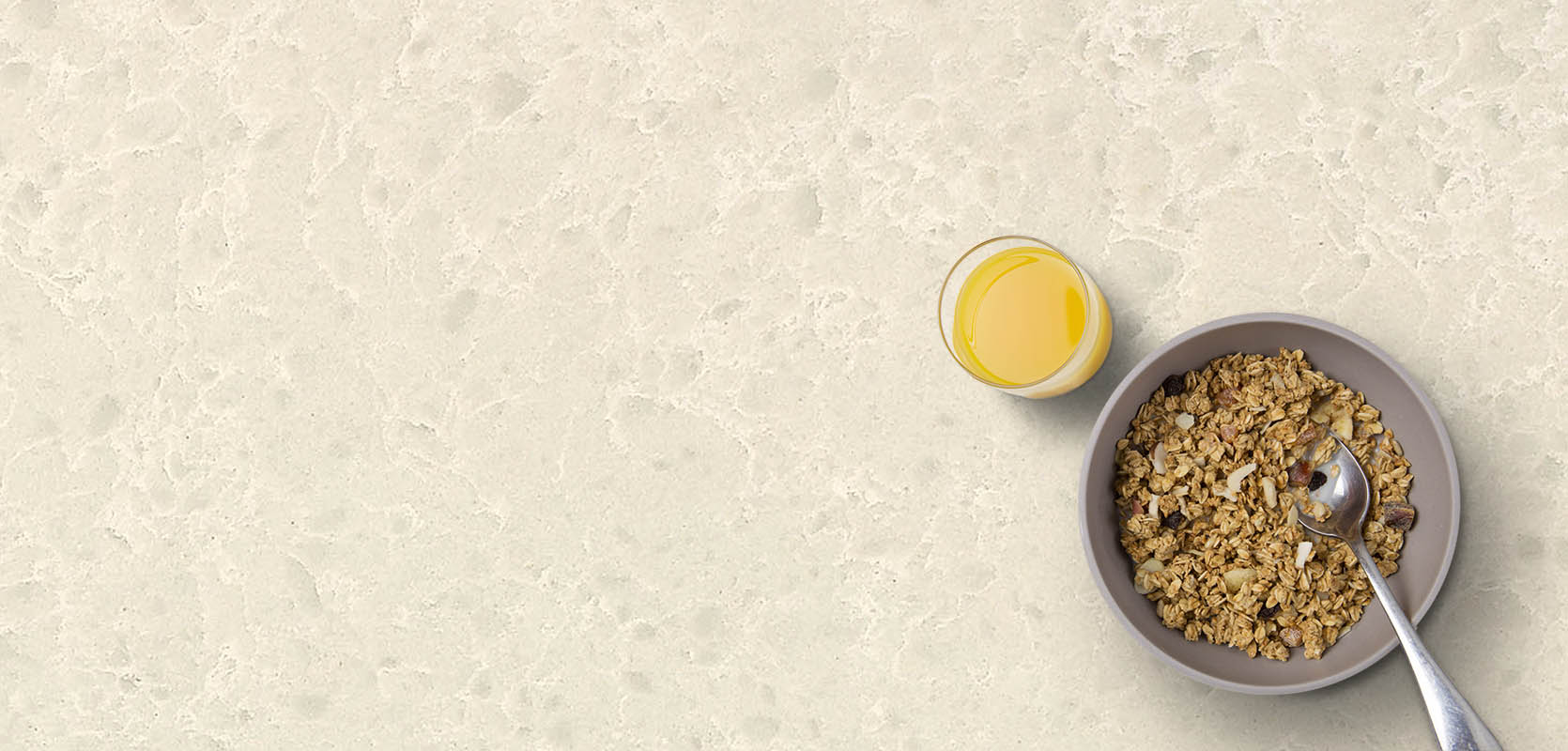 Softly flecked and marbled with contrasting veining, this colour and pattern radiates warmth and subtle hues in an ivory spectrum.