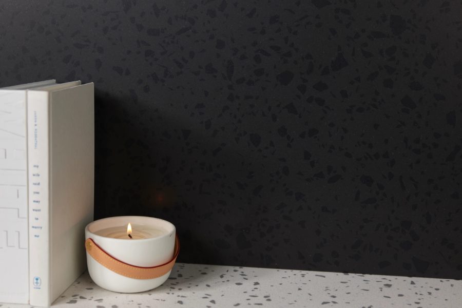As dark as the mines of Appalachia, Kentucky Coal features a smooth and strong iron-gray platform with a mosaic of darker gray shapes.