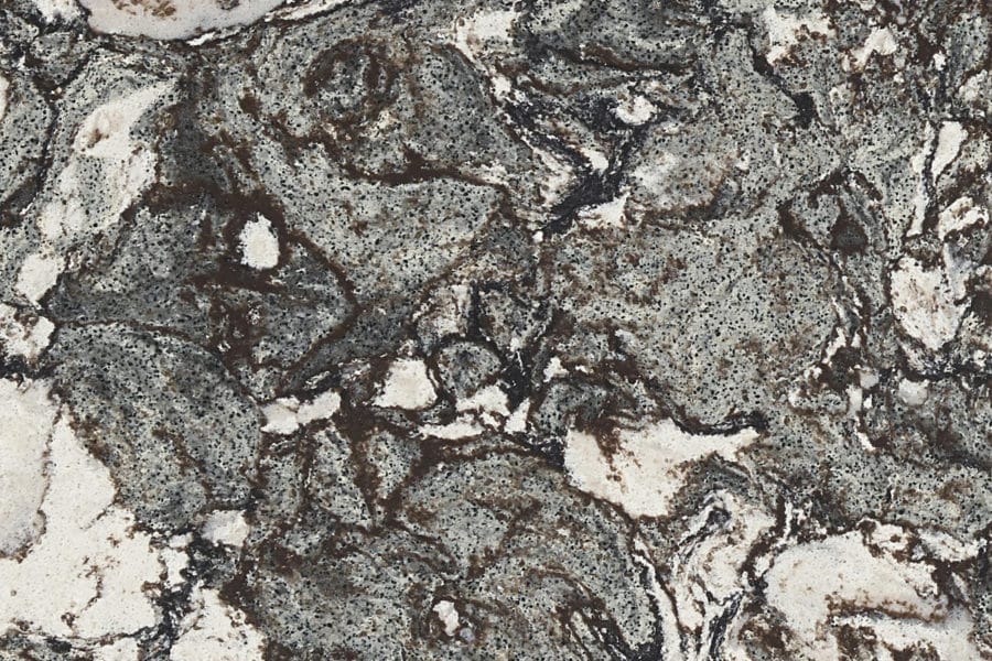 Rich, warm walnut-brown, dark grays, and neutral creams swirl and coalesce into a dense medley of fascinating shapes and tones.