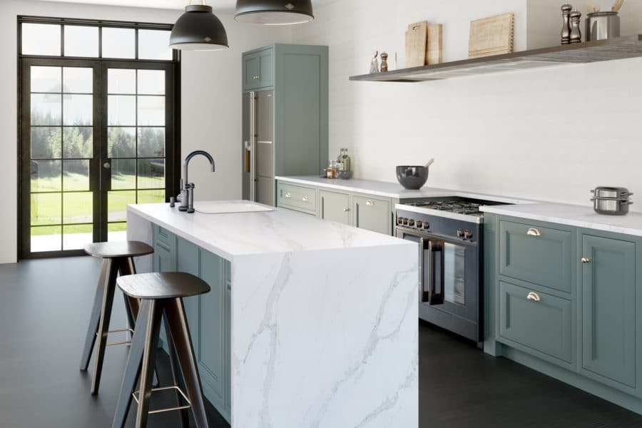 Silestone Eternal Calacatta Gold: Patterned with a blueish and grey vein plus golden shades, it is one of the most desired natural stones in history due to its whiteness. Eternity and elegance.